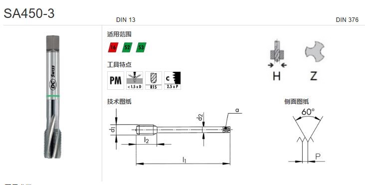 特殊合金系列-SA450-3 MF16x1.5 4HX 螺旋丝锥