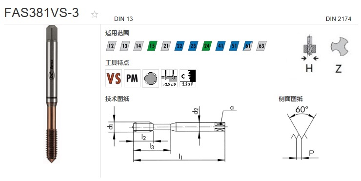 FAS系列 M3 6HX 带润滑槽挤压丝锥FAS381VS-3 M3 6HX 瑞士DC166612