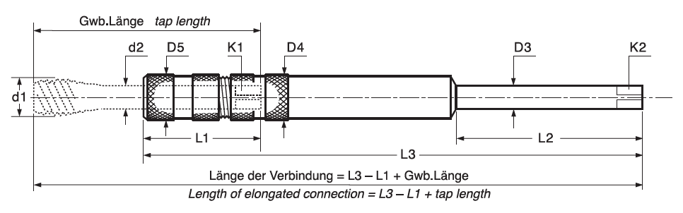 | 内冷丝锥延长杆Ø26,0 x 330 ( M22 - M24 ) | 10020322 | - | M22 - M24 | 18,0 | 14,5 | 47 | 18,0 | 14,5 | 26,0 | 100 | 330 |